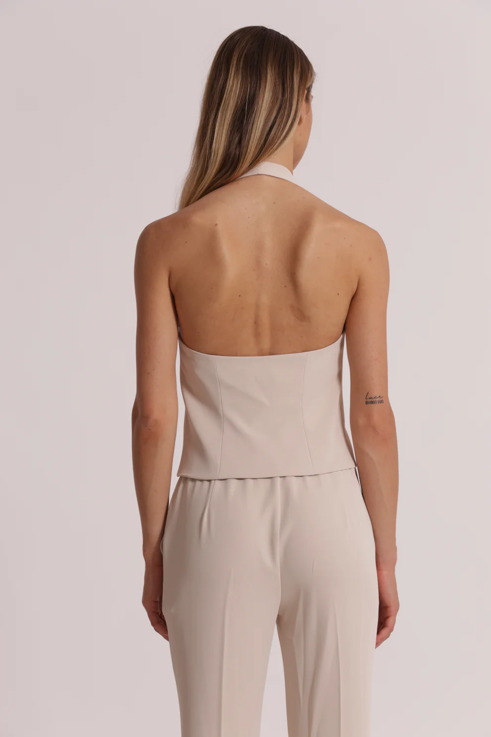 Top estilo Chaleco corto con cuello halter con botones delanteros, espalda y hombros descubiertos