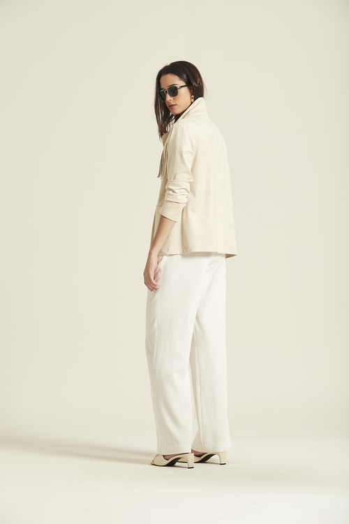 Chaqueta ligera confeccionada en tejido de efecto ante en color crema.