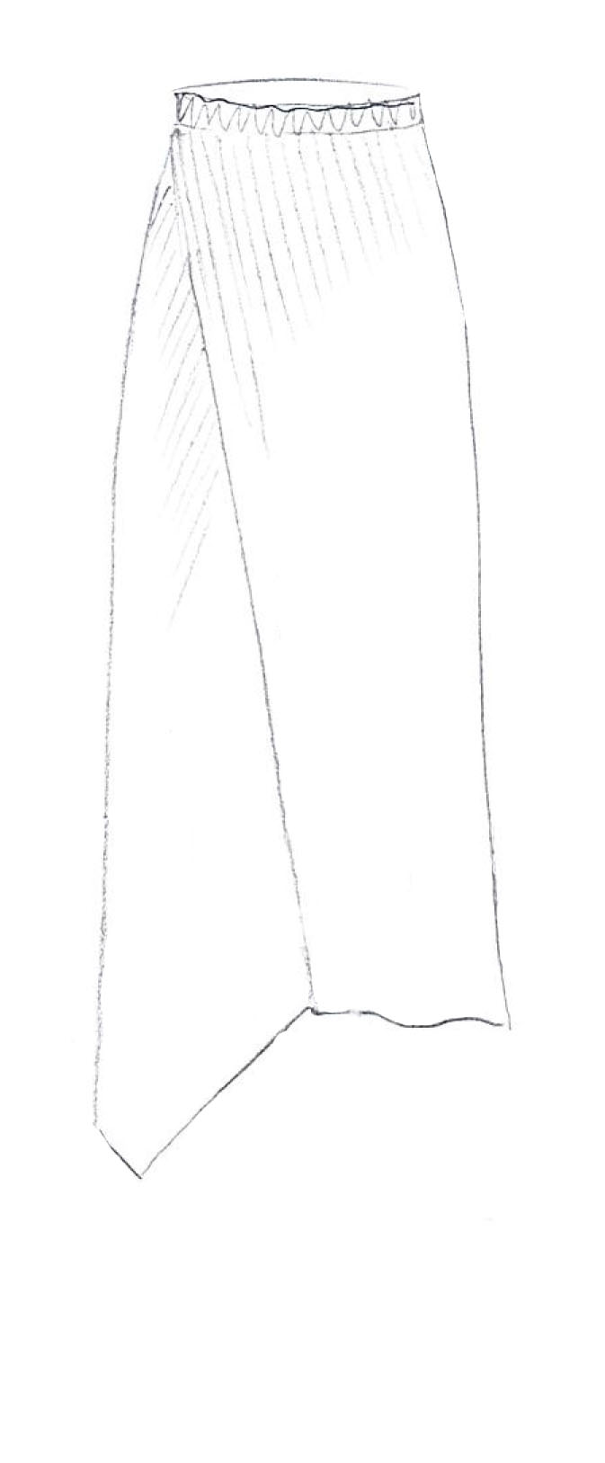 Falda asimétrica con cortes y cintura elástica. Adornada con pespuntes a contraste.