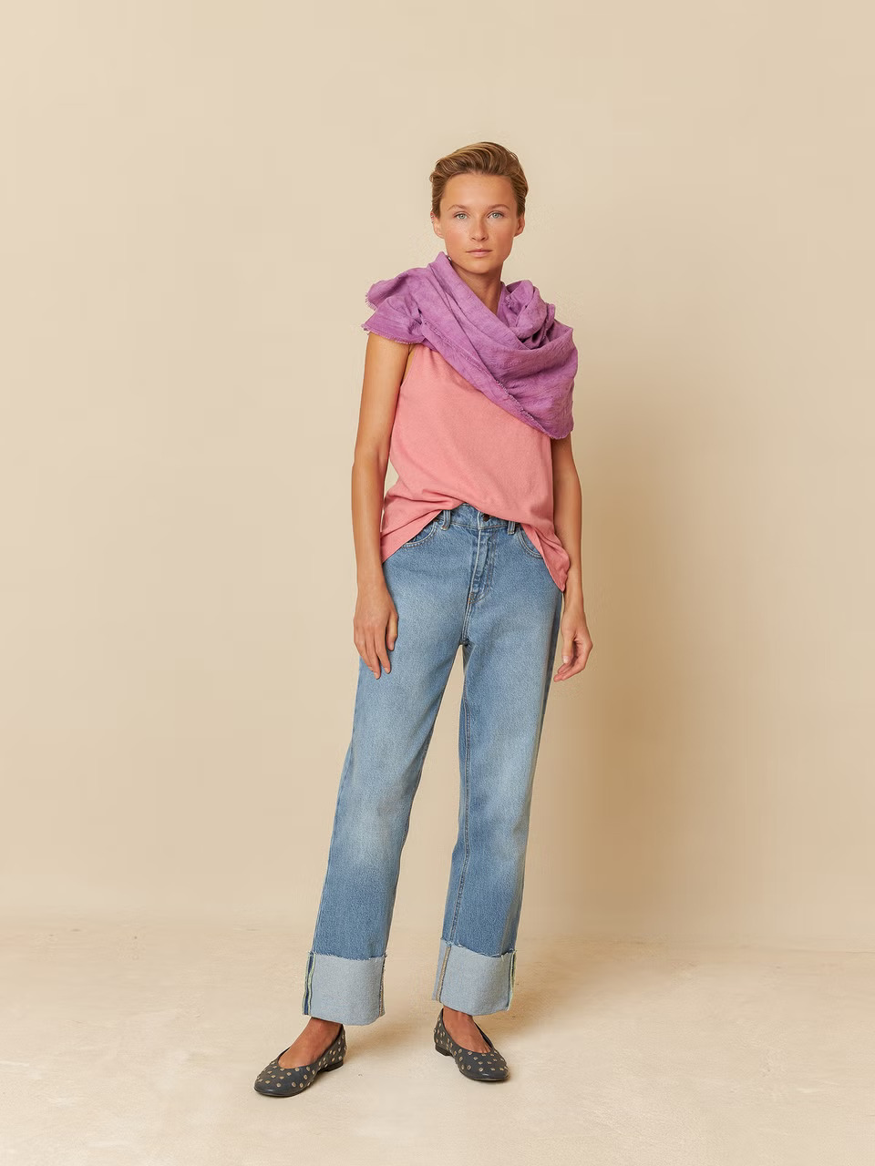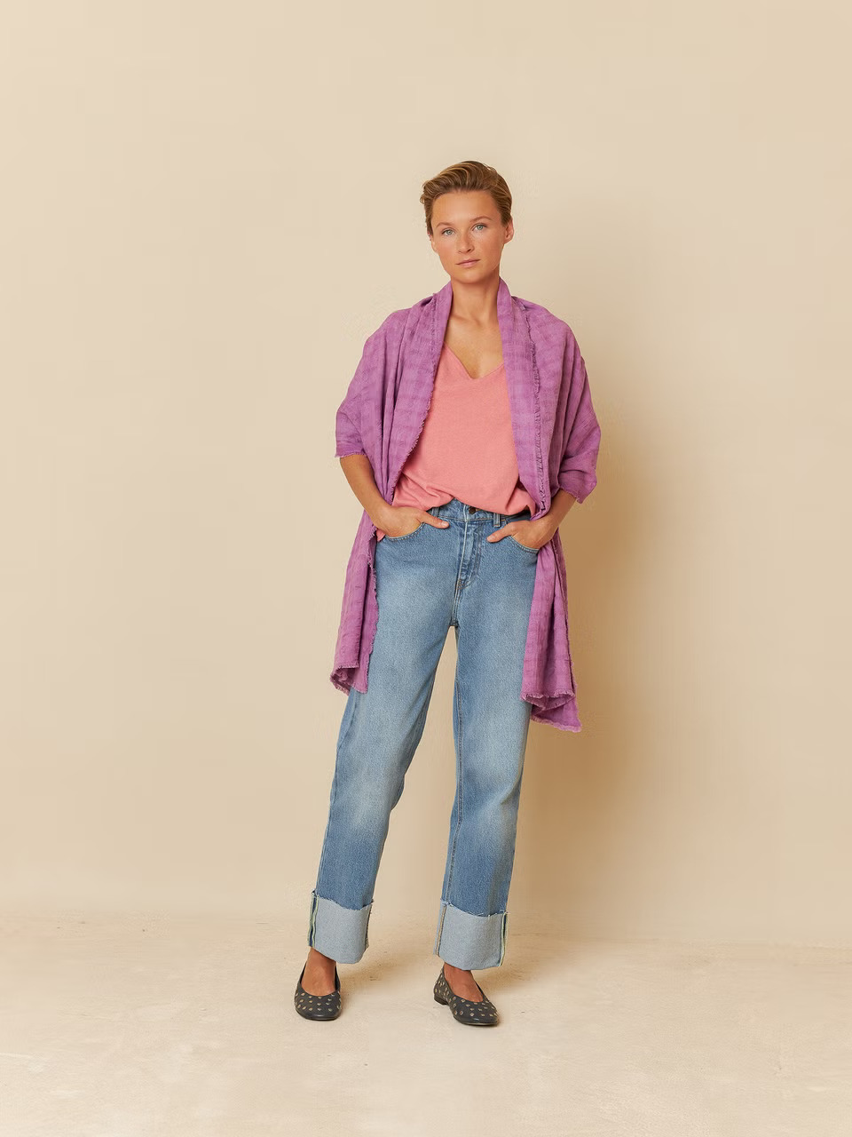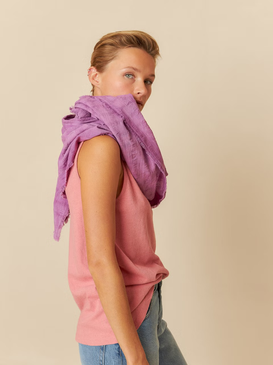 El fular con acabado desflecado se puede llevar como tú quieras: Es multiposicional. Tenemos tres colores ideales, quédate el que más te guste!