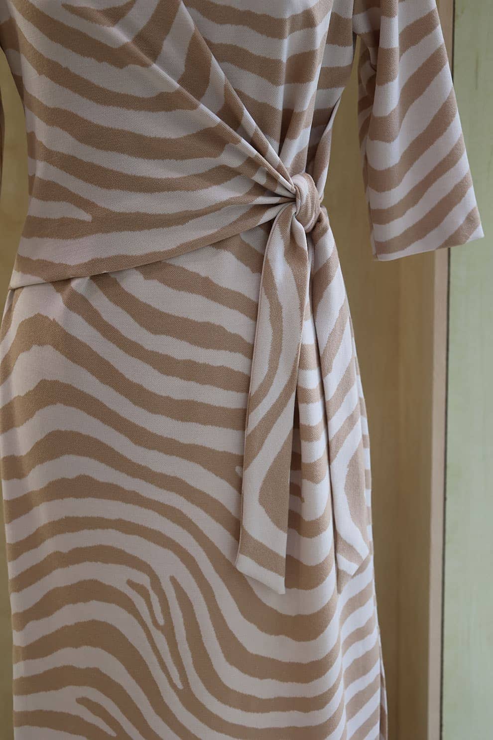 VESTIDO-SINAL4-PUNTO ESTAMPADO con diseño cruzado y nudo lateral